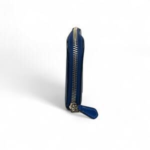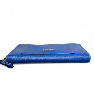 Coach Crossgrain Leather Blue Accordion Zip Long Wallet silver hardware