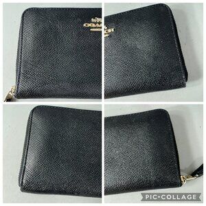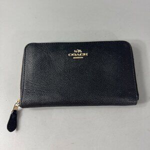 Coach Crossgrain Leather Medium Zip Around Wallet, Black