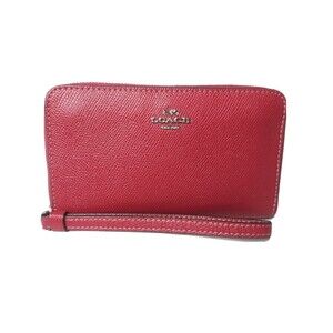 Coach Cross-grain Leather Wallet Wristlet Maroon Red F58053