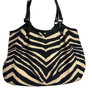 Coach DEVIN Signature Stripe Black Zebra Print Tote Shoulder Bag Animal F24022