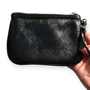 Coach Daisy Liquid Gloss Small Patent Leather Black & Gold Wristlet
