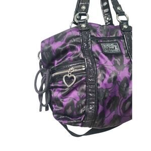 Coach Daisy Ocelot Hobo Shoulder Handbag Pocket Tote F20071 Black & Purple RARE