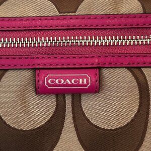Attached tan leather Coach tag.