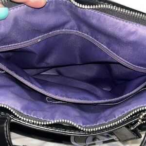 Interior has 2 sm pocket compartments and 1 zipper compartment