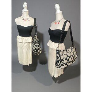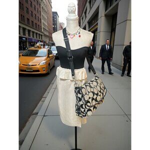• Iconic Coach signature pattern with black patent leather trim and hang tag