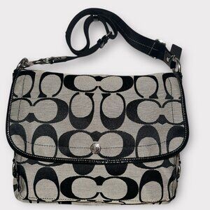 Coach Daisy Signature Messenger Bag F16557 Black Canvas Patent Leather Flap Bag