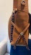 Stylish Coach crossbody bag in brown leather. Features bold blue stud accents. Ideal for versatile wear.