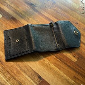 NWOT. 7 credit card slots. Full length bill compartment. Snap closure. Exterior zip pocket. Could easily be worn with chain to make into a crossbody or shoulder. Chain not included.