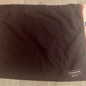 Coach Dust Bag Brown with Red Drawstring – 17” x 17” Storage Pouch for Handbags, Shoes, Accessories