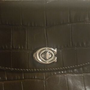 Coach Dark Brown Croc-Embossed Shoulder Bag