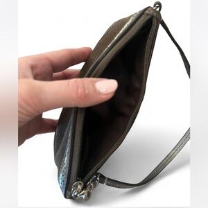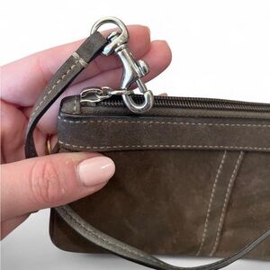Coach Brown Suede Small Wristlet Bag with silver hardware and zipper closure