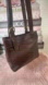 Sophisticated dark brown leather bag. Features sturdy straps and gold-tone hardware. Ideal for daily use. Brass hardware