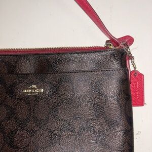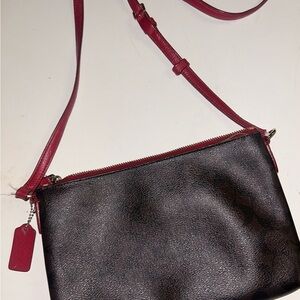 Coach Crossbody Bag β Chocolate Brown & Bold Red Trim