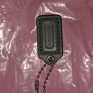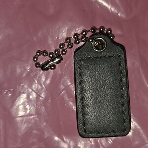 Stylish dark gray leather tag keychain by Coach. Features a durable metal chain. No marks or scratches