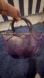 Sophisticated Coach satchel in dark purple leather. Features gold-tone hardware and dual handles. Perfect for elevating any outfit.