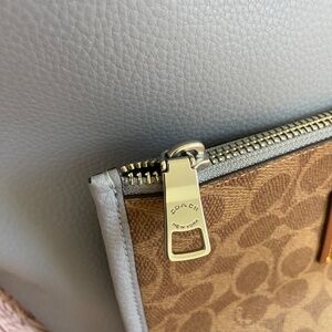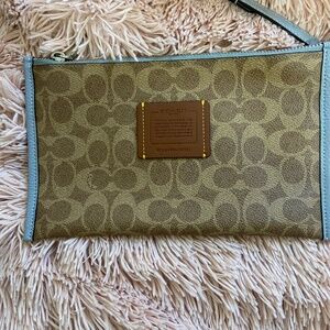 Grey blue Coach tote bag in excellent condition. It was bought last year but I barely used it. There will be a few faded stains on one of the sides of the bag. This bag also comes with a wristlet bag and it is also in excellent condition.