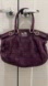 Chic Coach satchel in deep purple leather. Features gathered design and silver-tone hardware. Ideal for stylish outings.