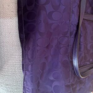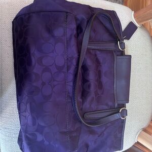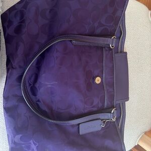 Chic Coach shoulder bag in deep purple. Perfect for adding a pop of color. Stylish and functional design.