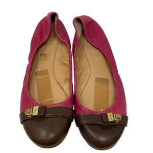 Coach Delphine Ballet Flats Womens 8.5 Slip On Buckle Pink Brown Leather