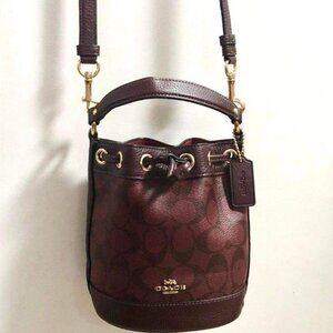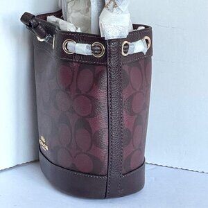 Coach Dempsey CO072 Drawstring Bucket Bag 15 Oxblood Leather Crossbody