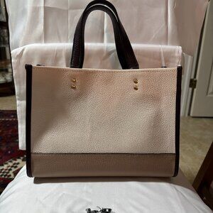 Coach Dempsey Carryall in Refined Pebbled Leather in Cream / Beige and Tan Signature Canvas