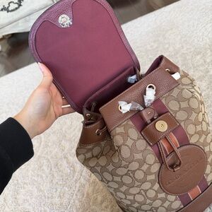 Elevate your style with the Coach Signature Backpack. Featuring a classic brown and tan design, this bag is perfect for any occasion. Enjoy the luxury and functionality of Coach.