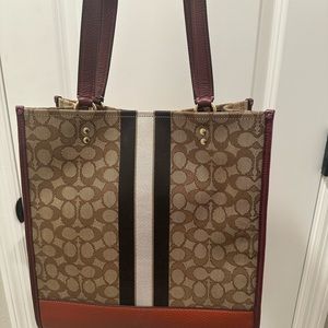 Coach Dempsey Tote In Signature Jacquard With Stripe And Coach Patch