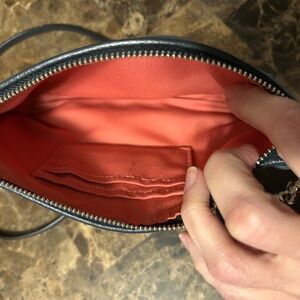Detachable strap with 21 1/4" drop for shoulder or crossbody wear 9" (L) × 5 1/2 (H)