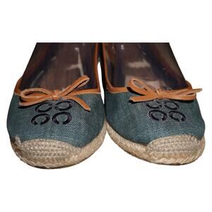 Coach Denim Espadrille Ballet Flats Women’s 10 Blue Tan Logo Bow Casual Shoes