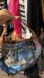 Stylish brown handbag with a spacious navy interior. Perfect for everyday use. authentic coach denim patchwork hobo bag. in new condition just has one small makeup mark. i didnt treat it yet but i do believe it will come out.