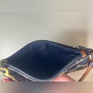Coach Denim Signature C Logo Wristlet Wallet Leather Trim.