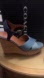 Elevate your look with Coach wedges. Denim straps and cork heel create a stylish contrast. Ideal for casual outings.
