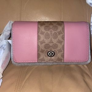 This is a brand new with tags Coach Dinky in the color pink with signature canvas! It is brand new but does not have dustbag. It comes with a removable crossbody strap. Please refer to the pictures for any slight imperfections in the handbag as I do not accept returns to prevent scammers.
