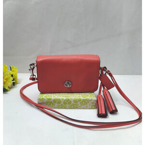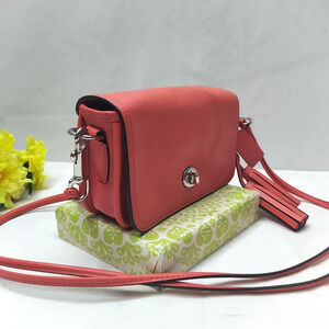 Coach Dinky Red Leather Turn Lock Flap Closure Tassel Crossbody Bag