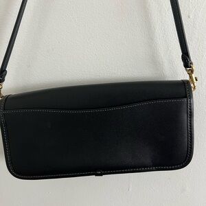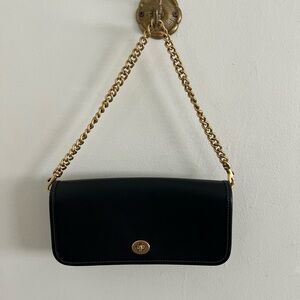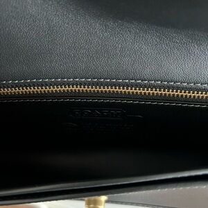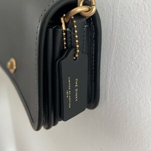 Coach ‘The Dinky’ Re-edition from 1974. Bags in NWOT condition. Has one outside slip pocket, interior slip pocket, and interior zip pocket. Comes with original hang tags, leather shoulder strap, and brass chain strap.