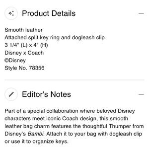 Coach Disney X Coach Bag Charm With Thumper Limited Edition- Rare Color Nwt