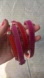 Beautiful, like-new condition. Leash is pink, red, and orange with silver hardware and silver round grommets. Comes with part of the box, with some wear on it.