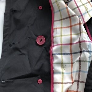Black with checkered lining/ Water resistant/ interior red buttons.