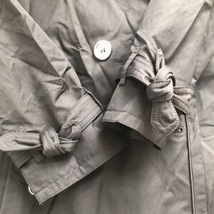 Beautiful Coach classic trench coat in a short length with adjustable belt and sleeve cuffs, front buttoned pockets, and shoulder epaulets.