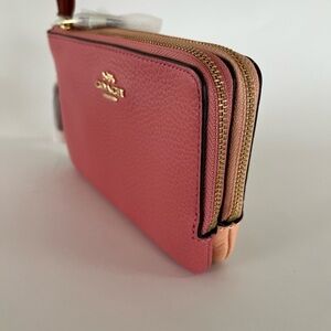Coach Double Corner Zip Wristlet In Colorblock - Faded Blush Multi