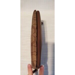 Coach double zip wristlet. 8" L X 4 3/4" H X 1" W. 8 card slots and fits phone. Great condition.