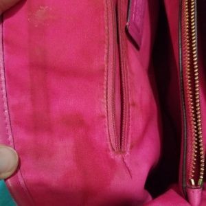 Fuchsia coach handbag in good condition on the outside minus one spot on the back. Pictures show any other issues. Matching wallet in my closet as well.