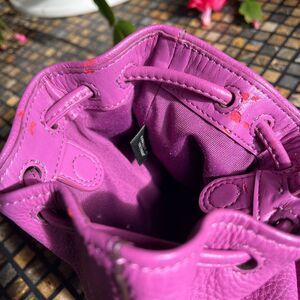 Coach Drawstring Pink Pouch Wristlet Pebbled Leather Bucket Bag Flowers