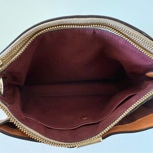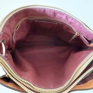 Coach Dreamer Bag Leather Shoulder Suede Casual Chic Colorblock Elegant Tan