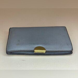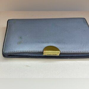 Stylish Coach wallet in blue with a gold accent. Perfect for everyday use.