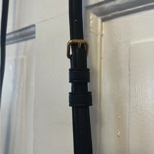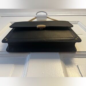 Comes with short brass chain and long adjustable crossbody strap. Includes hang tag.