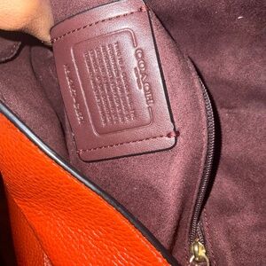 Originally retailed for $395, this gorgeous Coach Drifter Top Handle bag is crafted in luxe pebble leather with a bold colorblock palette of purple, mustard yellow, and orange. The structured silhouette and signature turnlock closure make it a timeless statement piece.