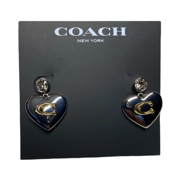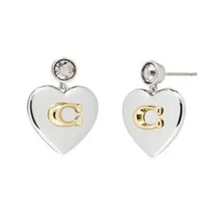 Rhinestone stud with a drop heart with classic C on front. Gold and silver tone. Comes with dust bag.