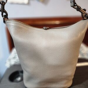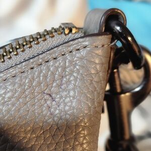 Good used condition. It has a few pen marks in the inside zipper section, two small discoloration marks on the inside bottom and a small pen mark on the outside corner. See the pictures for all details.