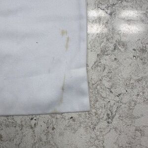 please see pictures foe stains and unraveling of string